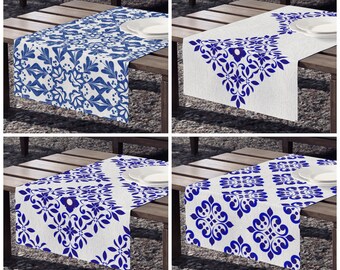 Blue Table Runner Tile Pattern Table Runner Blue White Table Etsy